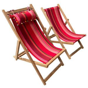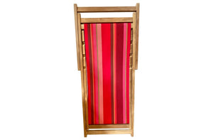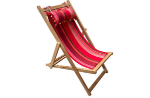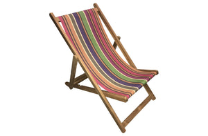 Our deckchair canvas is a traditional robust woven 100% cotton, with more subtle colours than modern synthetic fabrics which may often be harsh on the eye, and the posterior. Our fabrics look equally good in the garden or on the beach.