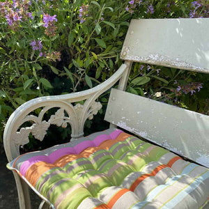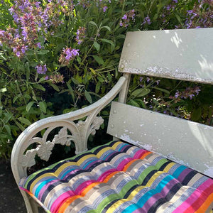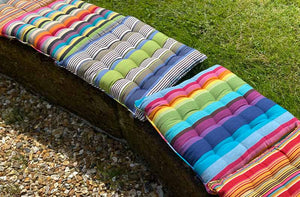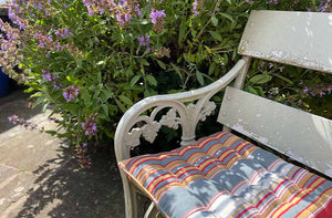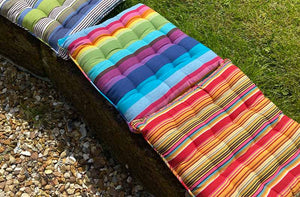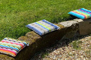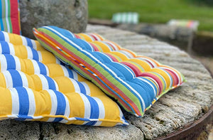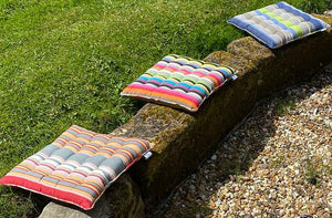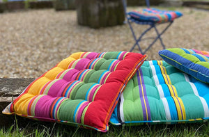 Piped Seat Pads in gorgeous woven cotton Stripes are ideal for kitchen, conservatory or garden chairs.These lovely striped seat pads are piped all around the edge and have 16 knots - we have many different colours to choose from.